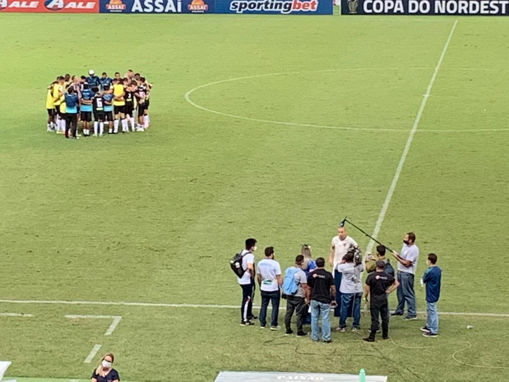 – Após o término da partida, só Wellington Paulista restou do Fortaleza, que ganhou o prêmio de melhor jogador e ficou concedendo entrevista, no gramado, enquanto todo o elenco e comissão técnica do Treze se reuniu no campo e fez uma roda de agradecimento.