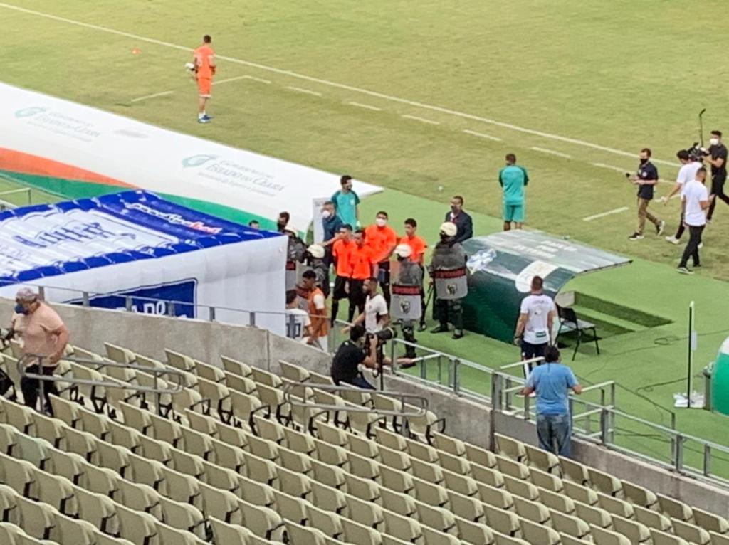 – O árbitro do jogo foi até o banco do Fortaleza e avisou: “Se vocês não deixarem eu trabalhar, vão sair”. Pouco tempo depois, o auxiliar-técnico Luís Fernando Flores foi expulso de campo, após o quarto árbitro informar ao juiz.