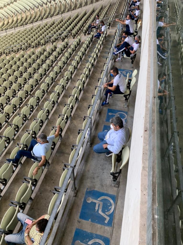 – Aliás, o Presidente do Fortaleza, Marcelo Paz, assistiu ao jogo ao lado do diretor de futebol, Alex Santiago. Já o executivo Sérgio Papelin ficou bem mais afastado em outro setor da Premium.