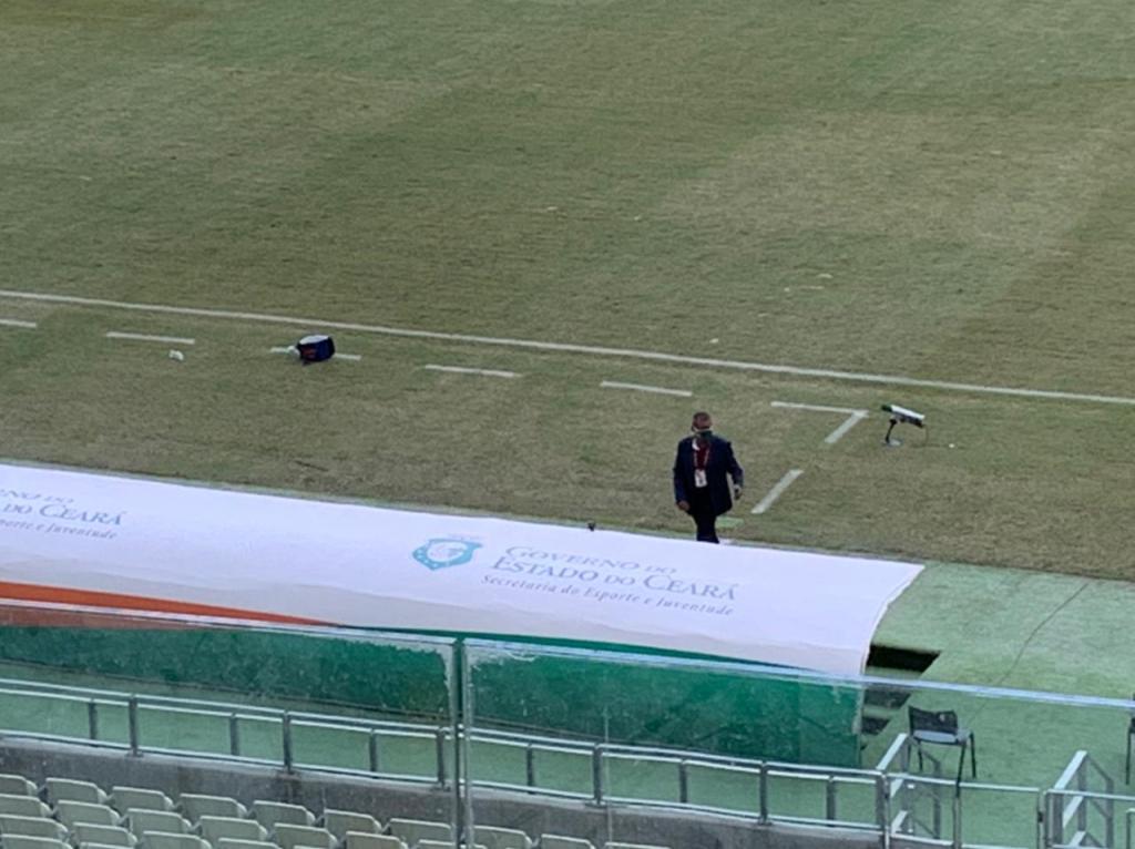 – Na área técnica do Fortaleza, os copos de água à disposição para jogadores e para o técnico Enderson Moreira estavam dentro de uma bolsa térmica. Enquanto na do Bahia, as águas ficaram soltas no cantinho.