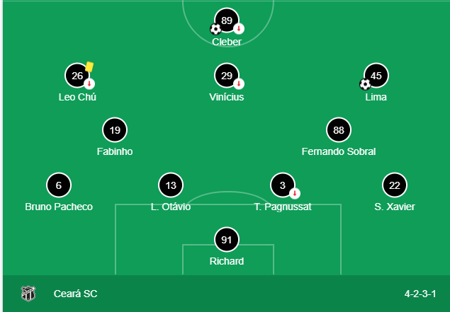 Das últimas 10 partidas em que atuou pelo Ceará, o meia Vina só atuou os 90 minutos em apenas uma. No empate por 0x0 contra o Arsenal, no Castelão, pela Copa Sul-Americana.