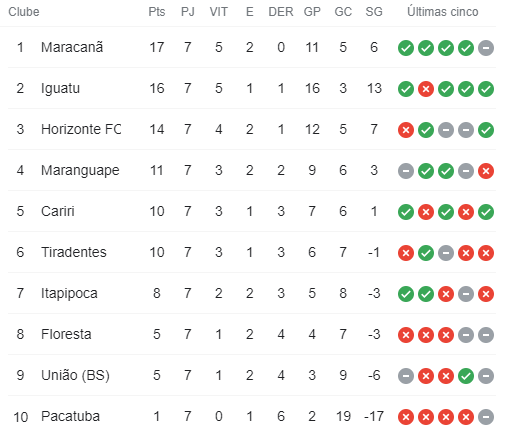 Faltam apenas duas rodadas para término da Série B Cearense. A 7ª Rodada foi finalizada nesse domingo e surgiu um novo líder. O Maracanã bateu o Horizonte por 3×1 em pleno Estádio Domingão, tirou o Galo do topo e assumiu a ponta do Campeonato. O vice-líder é o Iguatu que bateu o Floresta por 1×0. Já o Cariri derrotou o Pacatuba por 3×0, o Itapipoca ganhou do Tiradentes por 2×1, enquanto União e Maranguape ficaram no 1×1.