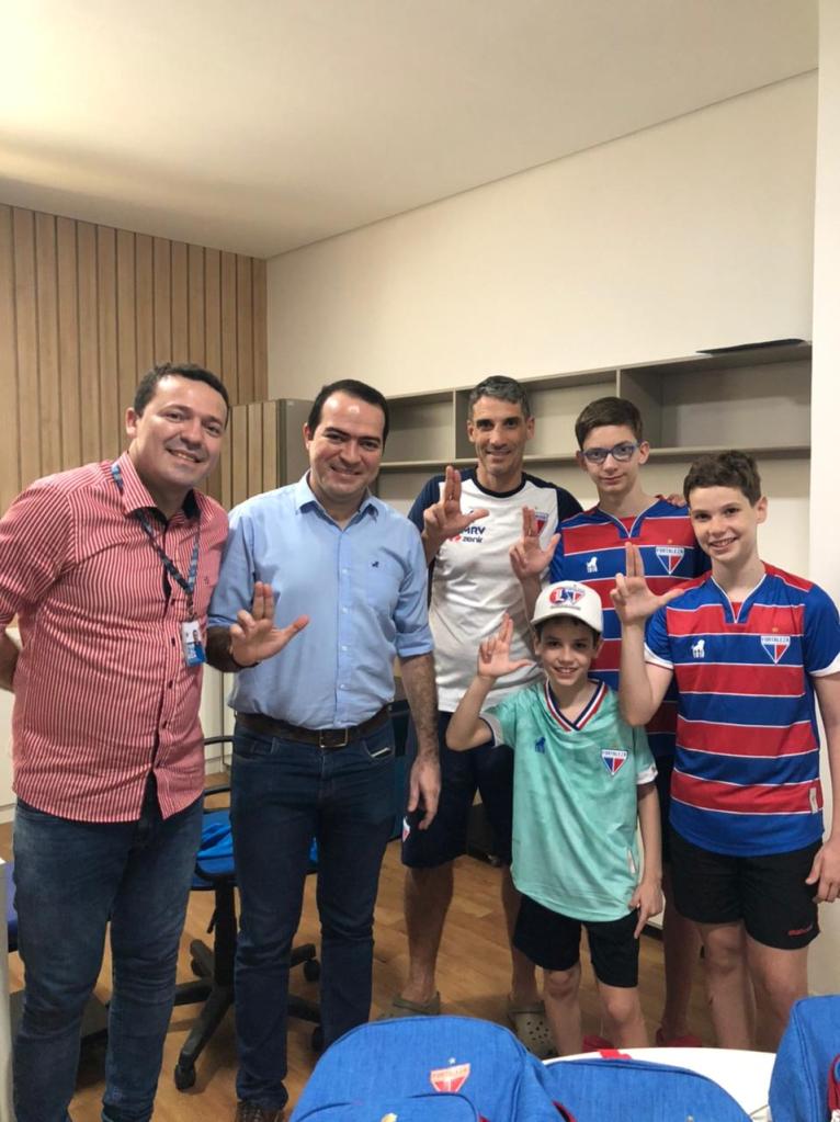 Marko, Matias e Santino tiraram fotos ao lado do Pai, de funcionários e do presidente Marcelo Paz. Numa delas, ao lado do gerente de licenciamentos do clube, Renan Menezes, do mandatário tricolor e de Vojvoda, a imagem viralizou pelas redes.