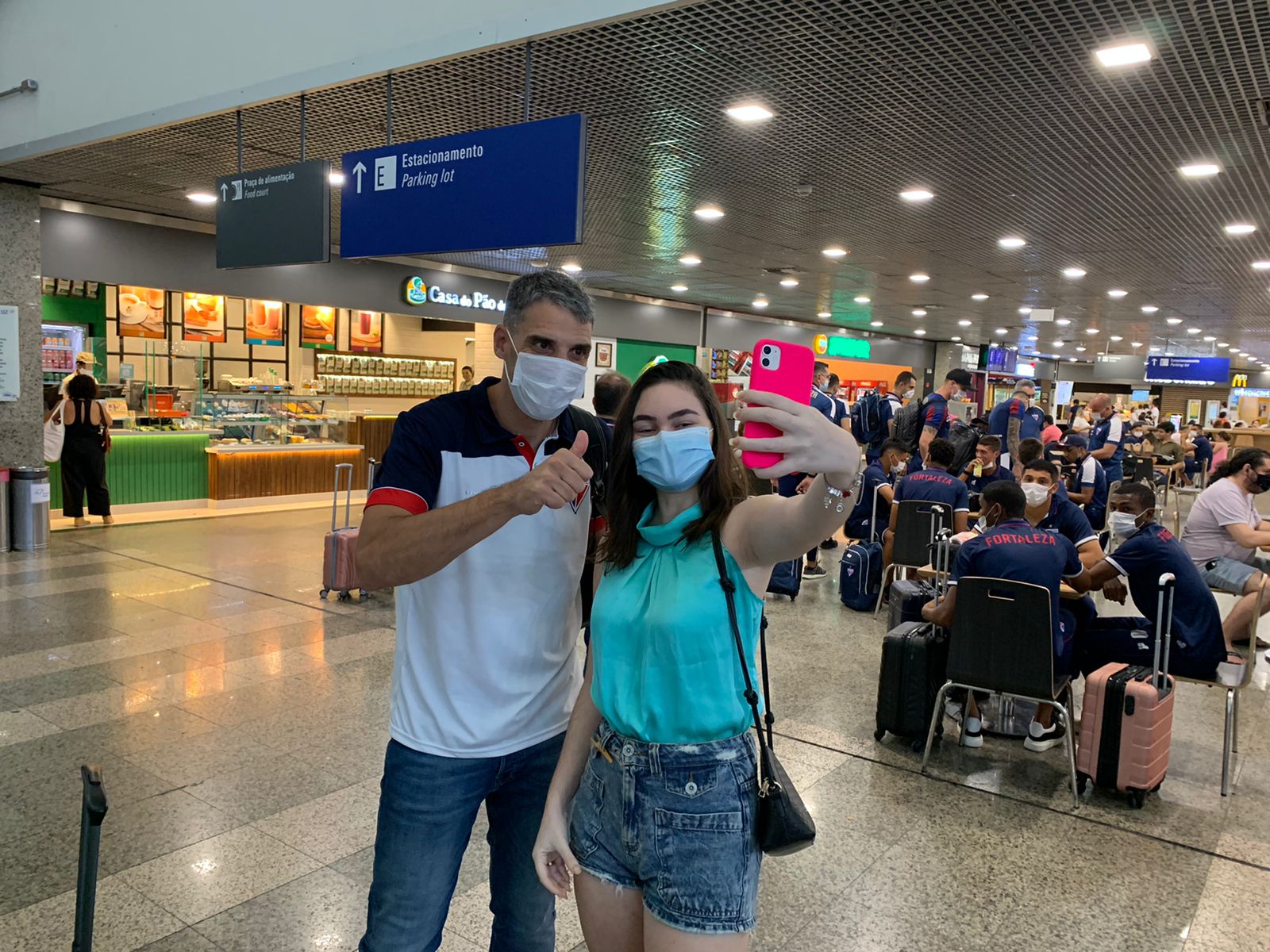 No saguão do Aeroporto Pinto Martins, vários jogadores e também o técnico Juan Pablo Vojvoda fizeram questão de saudar e conversar com os jovens tricolores e desejarem sorte no desafio em Minas Gerais.