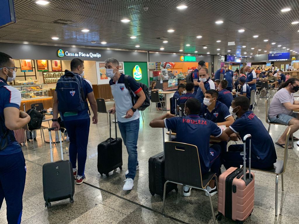 A delegação do Fortaleza viajou nesta sexta-feira, 03, para Salvador, onde vai enfrentar o Bahia, nesse sábado, às 21h, em Pituaçu (com transmissão do TNT e Premiere), no encerramento do 1º turno do Brasileirão. O time tricolor está em 3º lugar e uma vitória garante a equipe de Juan Pablo Vojvoda entre os 4 melhores, independentemente dos jogos atrasados do Flamengo (5º colocado, mas com 2 partidas a menos).