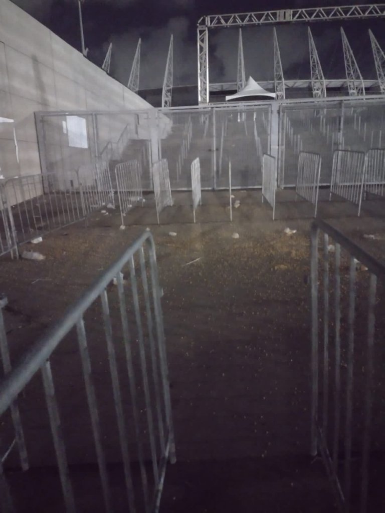 De acordo com a repórter Rafaela Brasileiro, do Portal Esportes News Mundo, nesta madrugada de terça para quarta, foram colocados grãos de milho e galinhas mortas em parte das grades da Arena Castelão. O vandalismo aconteceu no lado em que entra a torcida do Ceará.