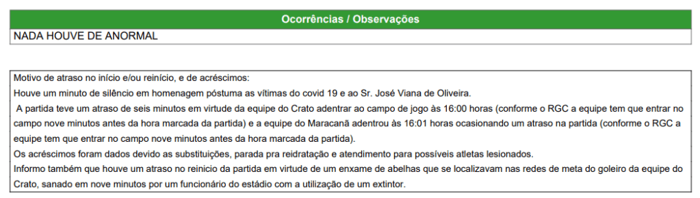 Outra curiosidade aconteceu no Estádio Inaldão, em Barbalha, no jogo Crato 0x0 Maracanã. Na volta para o 2º tempo, um enxame de abelhas atrasou o reinício da partida.
