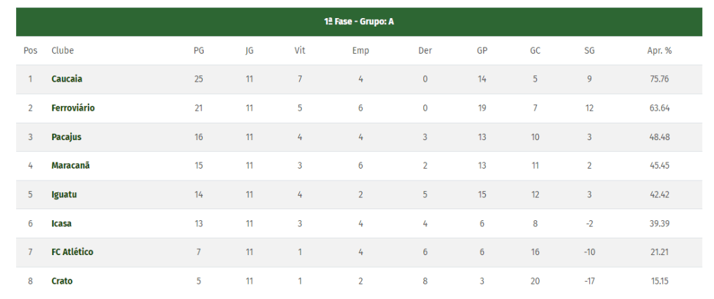Vale lembrar o regulamento do Estadual. Os 2 melhores colocados desta 1ª Fase avançam diretamente para as semifinais. Enquanto que o 3º colocado enfrenta o Ceará, e o 4º colocado pega o Fortaleza nas quartas de final. Os 2 últimos caem para a 2ª Divisão.