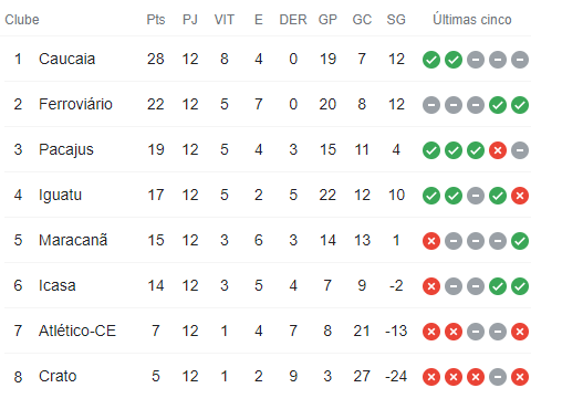 Em 12 partidas disputadas no Campeonato Cearense, o Caucaia ganhou 8 e empatou 4, marcou 19 gols e sofreu apenas 7. O time, que ano passado ao terceirizar o departamento de futebol, chegou a passar vergonha na disputa da Série D do Brasileiro ao sofrer goleadas humilhantes, voltou a ser comandado por dirigentes locais, contratou o técnico Roberto Carlos, apostou em jovens da cidade e faz uma campanha espetacular.
