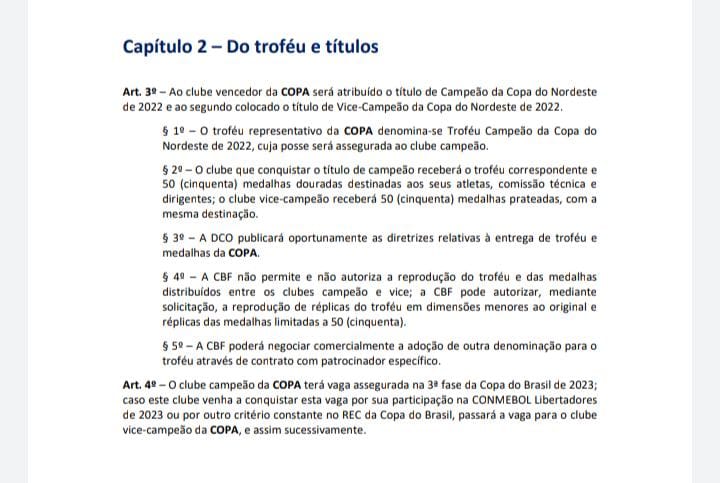O motivo é simples para a torcida do Peixe. Caso o Leão levante a taça de campeão da Copa do Nordeste, o Fortaleza já estará automaticamente classificado para a (3ª Fase) Copa do Brasil de 2023, conforme regulamento abaixo.
