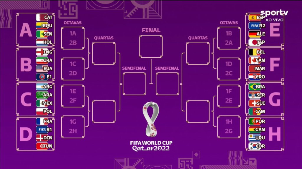 A Fifa realizou nesta sexta-feira, 1º, em Doha, no Catar, o Sorteio dos Grupos da Copa do Mundo. O Torneio, que será realizado de 21 de novembro a 18 de dezembro, ainda precisa conhecer 3 seleções, que participam da repescagem.