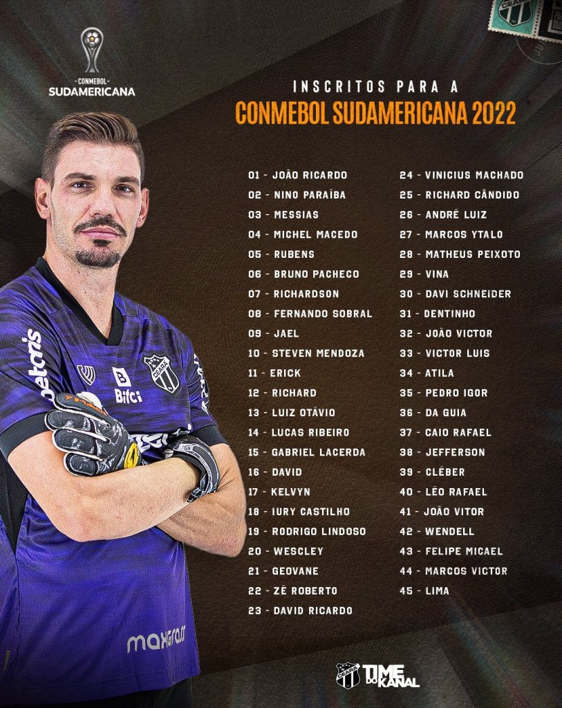 A 2 dias da estreia na Copa Sul-Americana, o Ceará divulgou a lista dos 45 atletas inscritos para participar do torneio continental.