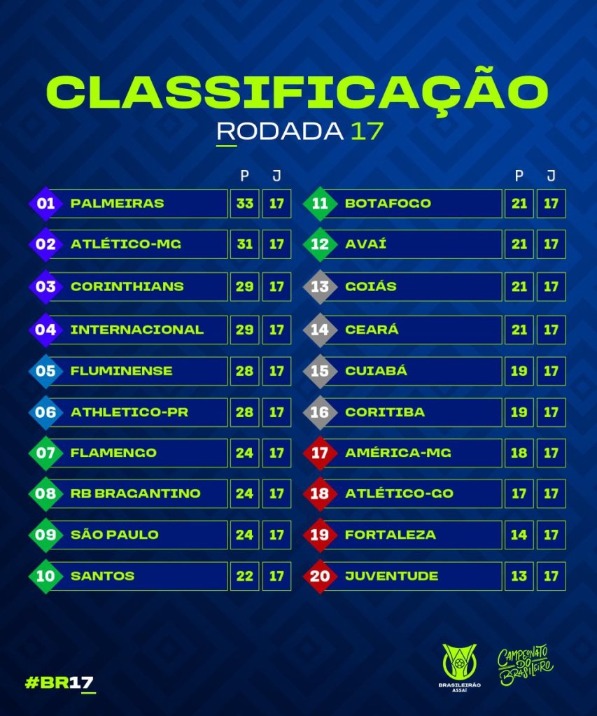 O Fortaleza, que vem de vitória por 1×0 sobre o Atlético/GO, no último domingo, está em penúltimo lugar no Brasileirão com 14 pontos e precisa de novo triunfo para seguir em busca de sair do Z4. Neste momento, o Tricolor está a 5 pontos do 16º colocado, Coritiba.