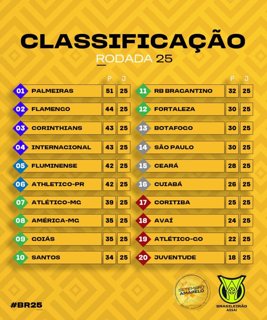 O Fortaleza está em 12º lugar com 30 pontos ganhos, na zona de classificação para a Copa Sul-Americana, mas está a apenas 5 à frente do Z4.
