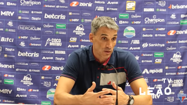“Eu acho que o Fortaleza começou o jogo com uma intensidade alta, com uma boa pressão no campo adversário. Conseguiu criar oportunidades de gol, a partir de recuperação de bola ante um time que tem uma ideia de jogo associado e curto de juntar muitas gente ao lado da boa. Era a quarta vez que enfrentávamos esse time. É verdade que tivemos dificuldade em finalizar para conseguirmos o nosso objetivo que era o gol. Eles conseguiram fazer gol. Um chute de fora da área que desvia, o segundo também. Mas nós fizemos 3 gols. Acho que o primeiro foi bem anulado, foi uma falta. O gol de Galhardo foi um bom gol, com uma bom cruzamento de Capixaba. Mas depois tivemos um outro gol anulado por impedimento, por muito pouco. Mas acho que o time teve compromisso, intensidade, não conseguiu o resultado. O resultado poderia ter sido um empate, porque o Fluminense teve suas chances, fez os gols e nós se fizemos um”, avaliou o treinador que foi questionado sobre a atuação da arbitragem.