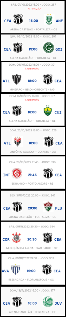 Confira abaixo os jogos de Ceará e Fortaleza:
