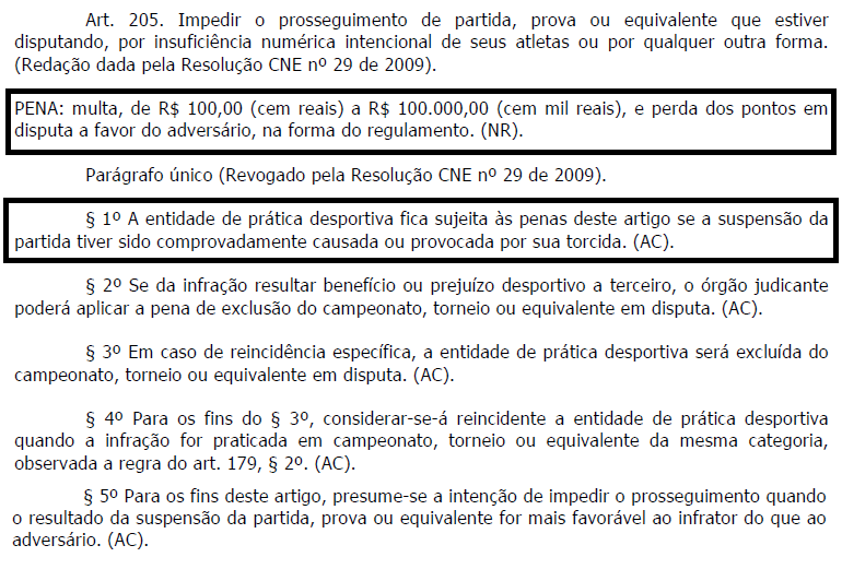 No CBJD, o artigo 205 tipifica os acontecimento no Castelão: