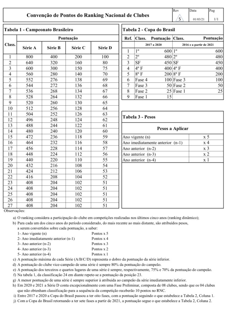 O ranqueamento do Fortaleza surpreende ainda mais por deixar atrás Corinthians (8º), Santos (9º) e Internacional (10º). Os critérios de pontuação no Ranking levam em consideração a participação dos clubes nas competições nacionais nos últimos 5 anos. Com o ano vigente multiplicado por 5, enquanto o último ano tem peso 1.