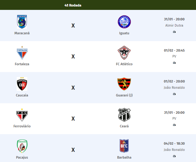 Aliás, o Iguatu só precisa de um empate para garantir classificação. Enquanto o Ferrão e o Maracanã podem avançar até com derrota, desde que o Pacajus não ganhe nesta 4ª Rodada.