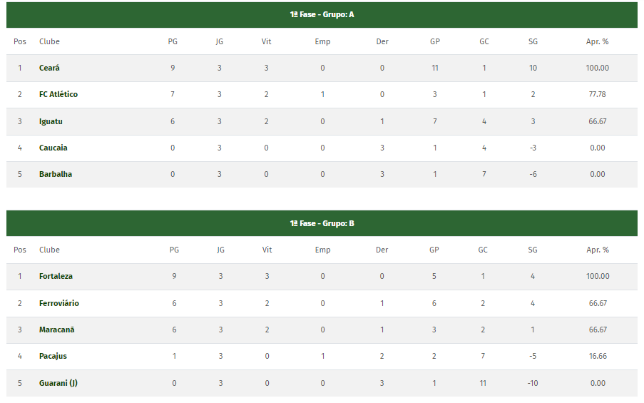 Com 100% de aproveitamento, Ceará e Fortaleza lutam para seguirem no 1º lugar de seus respectivos grupos e carimbarem o passaporte direto às semifinais. Enquanto Atlético, Ferroviário, Iguatu e Maracanã estão no encalço.
