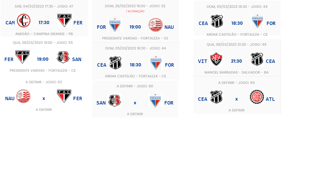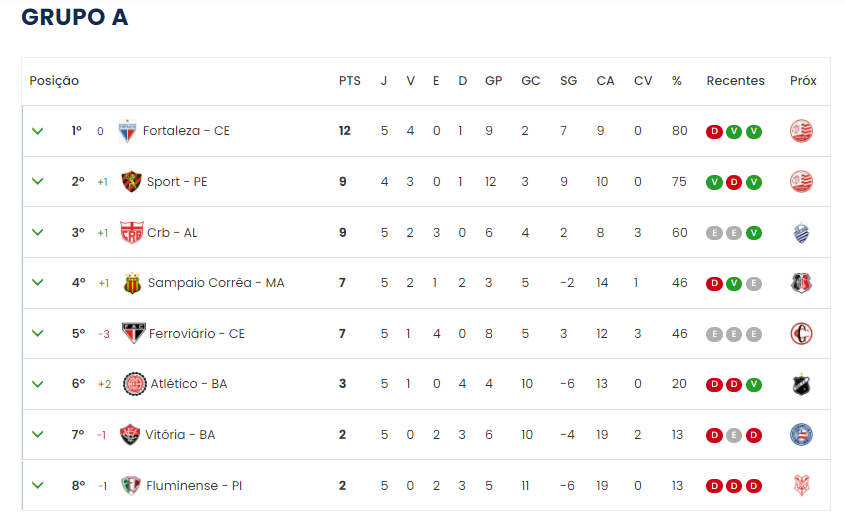 Enquanto o Ferroviário, no outro sábado, 4 de março, vai a Campina Grande, encarar o Campinense, às 17h30, no Estádio Amigão. Abaixo, confira a classificação atualizada dos grupos e os próximos jogos de tricolores, alvinegros e corais.