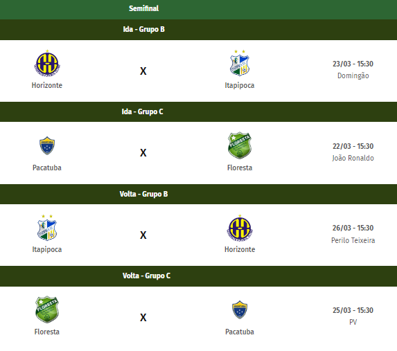 Assim, Icasa e Guarany estão garantidos no Quadrangular Final e esperam os outros 2 clubes, que irão disputar os duelos das semifinais. Assim, os confrontos são os seguintes: