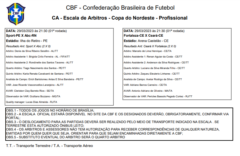 Quinto árbitro: Zaqueu Linhares – CE