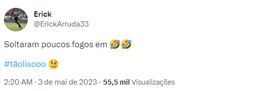 Inclusive, o atacante Erick foi às redes sociais para tirar onda com a prática e ainda deu uma alfinetada nos inquietos rubro-negros: “Soltaram poucos fogos em. #tãolisoooo”