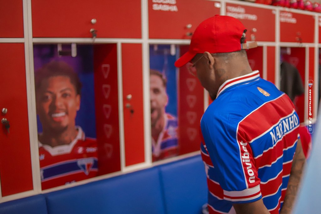 O atacante Marinho chegou à Capital cearense e foi ao Centro de Excelência Alcides Santos ter o primeiro contato com o elenco e com a sede do Fortaleza. O novo reforço leonino conheceu os vestiários e vestiu a camisa tricolor.