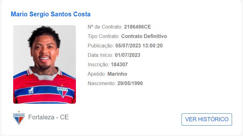 O atacante Marinho teve seu contrato registrado no Boletim Informativo Diário da CBF hoje, quarta-feira, 5. O jogador, agora regularizado, só depende do técnico Vojvoda par poder estrear pelo Fortaleza.