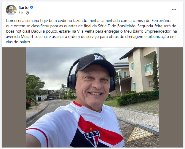 A classificação do Ferroviário às quartas de final da Série D, depois da excelente exibição ontem no PV com a vitória por 3×1 sobre o Nacional, deixou os torcedores do time completamente empolgados. E um dos mais ilustres não escondeu a felicidade. O Prefeito de Fortaleza, José Sarto, vestiu a camisa do Ferrão nesta segunda-feira e fez questão de publicar em suas redes sociais. Como diria o refrão: “é o Ferrim, meu fi”.