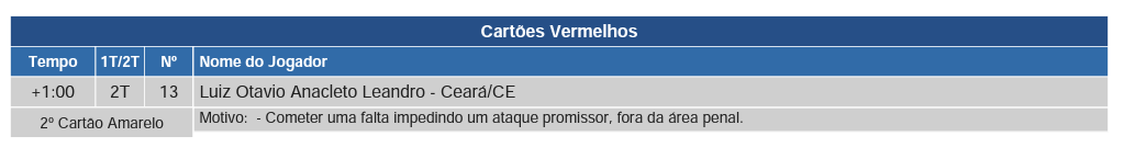 Naquele jogo, Luiz Otávio recebeu o 2º amarelo, e consequentemente o cartão vermelho, aos 46min do 2º tempo do árbitro capixaba, Dyorgines Padovani, que relatou o motivo na súmula.