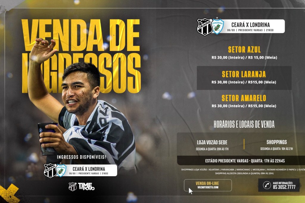 O clube iniciou à venda de ingressos hoje para a partida contra o Londrina. Somente o setor de arquibancada foi liberado. Os valores são de R$ 30 (inteira) e R$ 15 (meia).