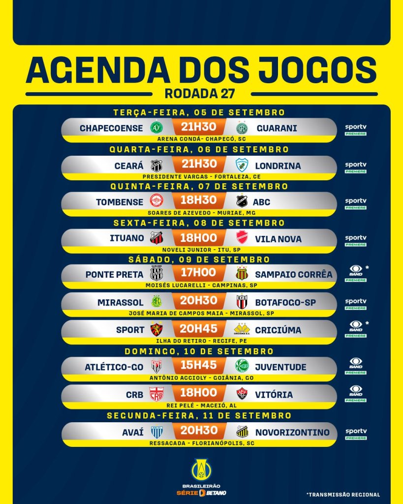 A 27ª rodada da Série B tem sequência nesta quinta-feira, mas os alvinegros vão ficar de olho mesmo é a partir de amanhã com Ituano x Vila Nova, em Itu, e a torcida vai ser para a equipe paulista derrotar os goianos, que estão em 7º lugar com 42 pontos.