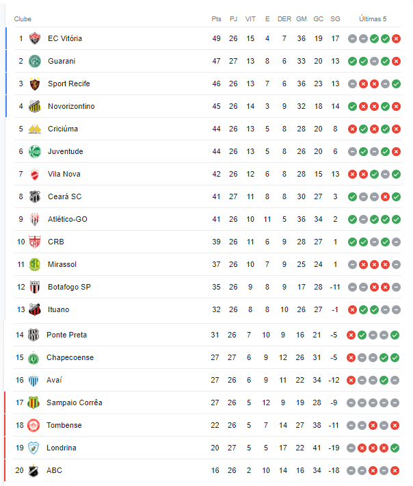 Pra finalizar, na segunda-feira, na Ressacada, o Avaí pega o Novorizontino e a torcida vai ser grande para os catarinenses. Abaixo, confira os jogos (que já teve Chapecoense 0x1 Guarani), a classificação de momento e pode secar e fazer os cálculos.
