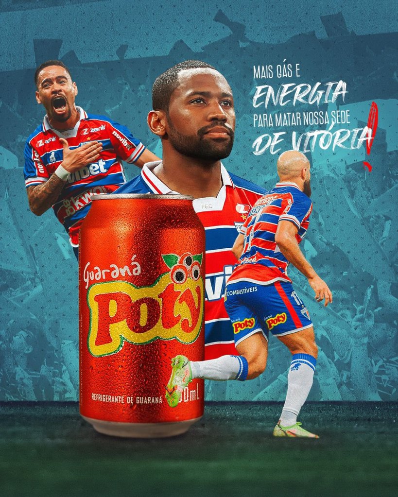 E o departamento comercial do Fortaleza ainda fechou outra parceria, mas dessa vez de forma pontual, apenas para o jogo desta terça-feira. O clube tricolor acertou com a companhia de bebidas brasileira Poty. A marca da empresa ficará na parte de trás do calção.