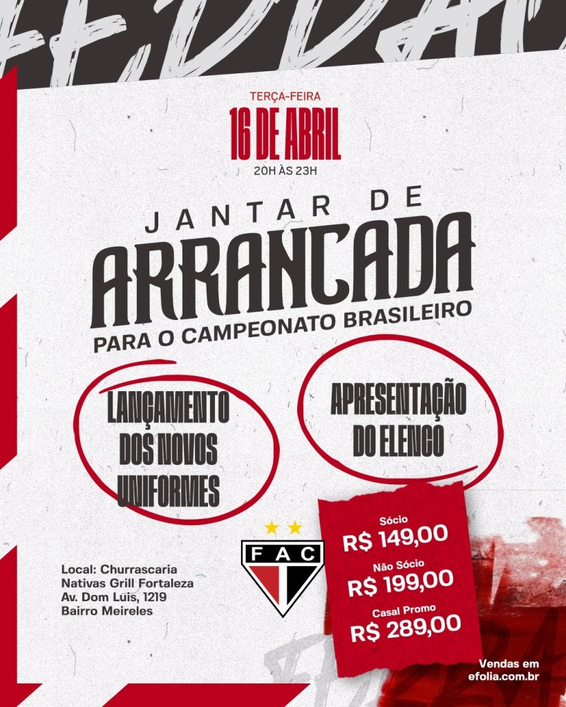 Para participar do evento, o torcedor do Tubarão poderá adquirir o ingresso no site efolia ou presencialmente na Loja do Ferroviário da Barra do Ceará e do Shopping Aldeota. Lembrando que os ingressos são limitados.