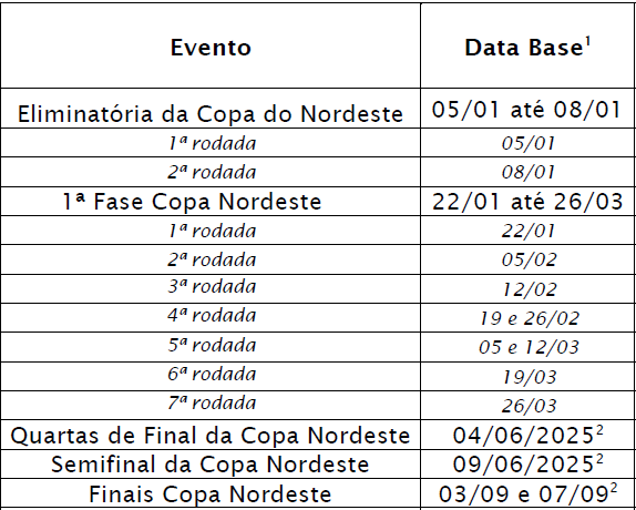 A CBF divulgou o calendário da Copa do Nordeste 2025. A Fase de Grupos da Lampions League está agendada para iniciar em 22 de janeiro. Enquanto as finais só serão realizadas em setembro, dias 3 e 7. Ou seja, a principal competição regional do País terá 8 meses de duração.