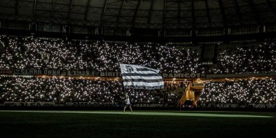 Ceará Veja a festa da torcida do Ceará com mosaico e bandeirão antes de a bola rolar na Final da Copa do Nordeste 19/04/2023