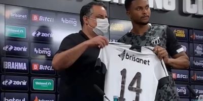 Lucas Ribeiro é apresentado, explica polêmica, afirma que é inocente e diz que vai honrar a camisa para ter o apoio da torcida do Ceará